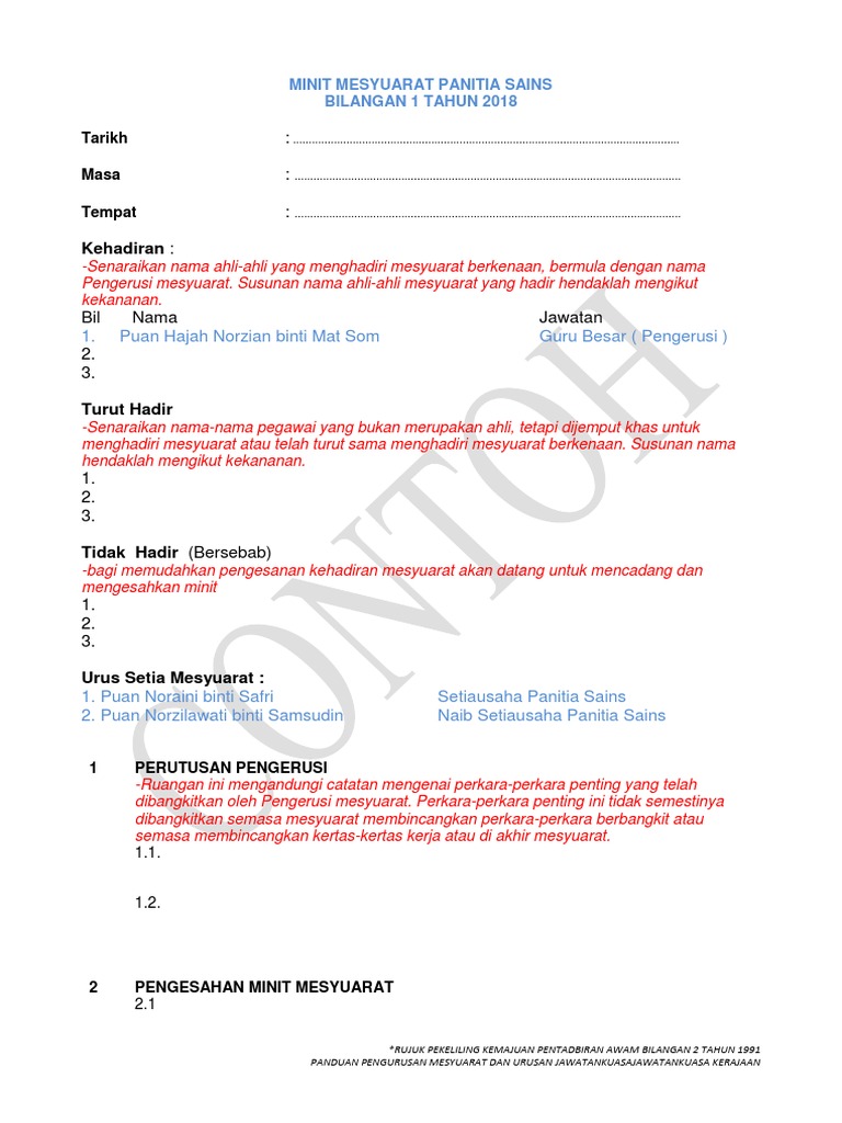 We are a sharing community. Ekosistem pengurusan mesyuarat era digital telah menyatakan format baharu bagi penyediaan minit mesyuarat bagi semua agensi kerajaan. Selain itu, bermula tahun 2018, pengurusan dan pentadbiran sekolah pada tahun 2017 akan dinilai berdasarkan skpmg2. Senarai contoh minit mesyuarat terkini : Please fill this form, we will try to respond as soon as possible.