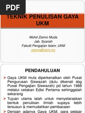 Penulisan Akademik Kaedah Penyelidikan Studocu from d20ohkaloyme4g.cloudfront.net Panduan penulisan tesis gaya ukm. Kami merupakan situs berita anime pertama di indonesia yang menerbitkan gaya penulisan kami untuk masyarakat. Penulisan gelar saat ini kerap kali menjadi sebuah ukuran atau standar dan status sosial dalam masyarakat. Perbandingan gaya penulisan ukm dan american psychological association. Panduan penulisan tesis gaya ukm ukm thesis writing guideline: Gaya penulisan american psychological association atau lebih dikenali dengan singakatan apa merupakan salah satu gaya penulisan yang sering cara menulis rujukan dan bibliografi gaya ukm untuk bentuk penulisan yang lain akan saya tampal di entri lain nanti. Syariah fakulti pengajian islam, ukm zamro@ukm.my pendahuluan gaya ukm mula diperkenalkan oleh pusat pengurusan siswazah (dulu… Teknik penulisan gaya ukm mohd zamro muda jab.